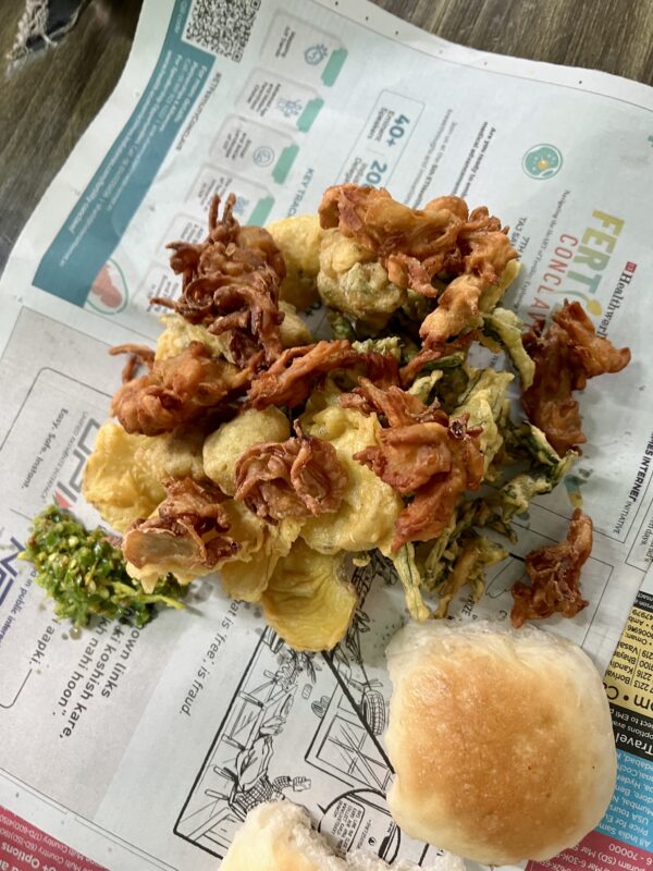 Piping hot Assorted Pakoras, my inspiration for Breaded Squid Fry.