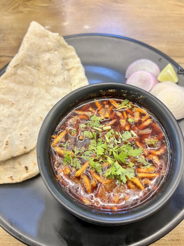 I recently enjoyed a delicious and piping hot Khandeshi Sev Bhaji. The spice level is best described in Marathi as “Zaanzanit,” which perfectly captures the intensity. The Sev Bhaji was incredibly spicy and hit the spot just right. I kept a tissue close at hand to wipe my running nose, and I was satisfied with just one bhakri served alongside it. With that much spice, another bhakri would definitely be needed!